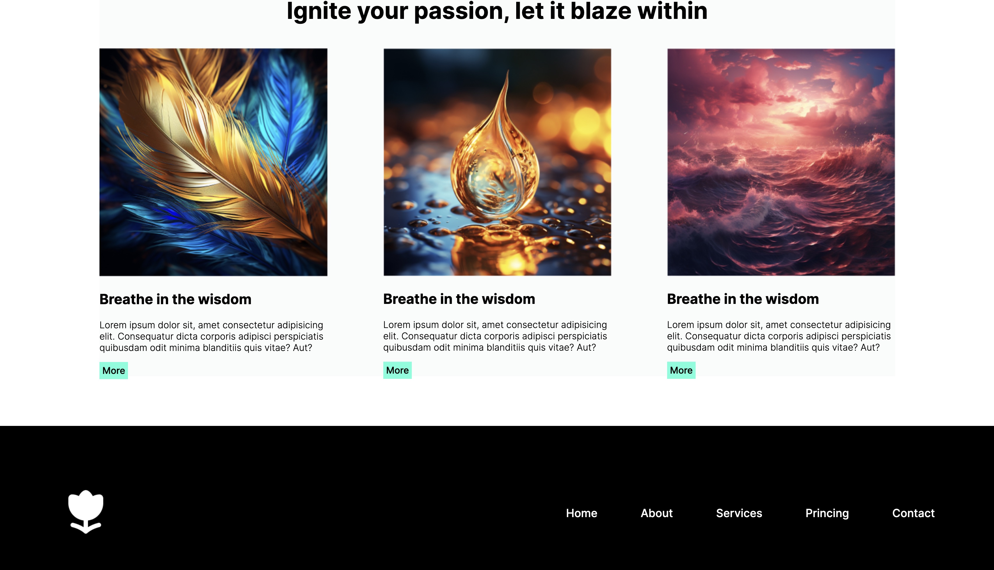 This page is built with HTML and CSS, featuring a footer and a header where a menu of options is displayed, leading directly to the content.